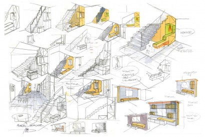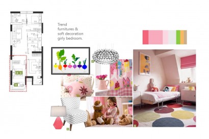 Gift from their parents or personal investment, this apartment will provide all needs for this escape: from this big entry door they will access a convivial dining room and living area. A landscape below the stairs use as expression of green space and relax feeling. Hiding next the living room, the entertainment room where parents can enjoy a peaceful reading and drink while the son is watching TV or finish his homework inside his own study room upstairs. The large bedroom with 2 balconies procure a long reading space, ideal to finish your work before come back to the city, if you need calm? Up to you! Use the 2 hiding doors to close this space from the sleeping area with the king size bed.